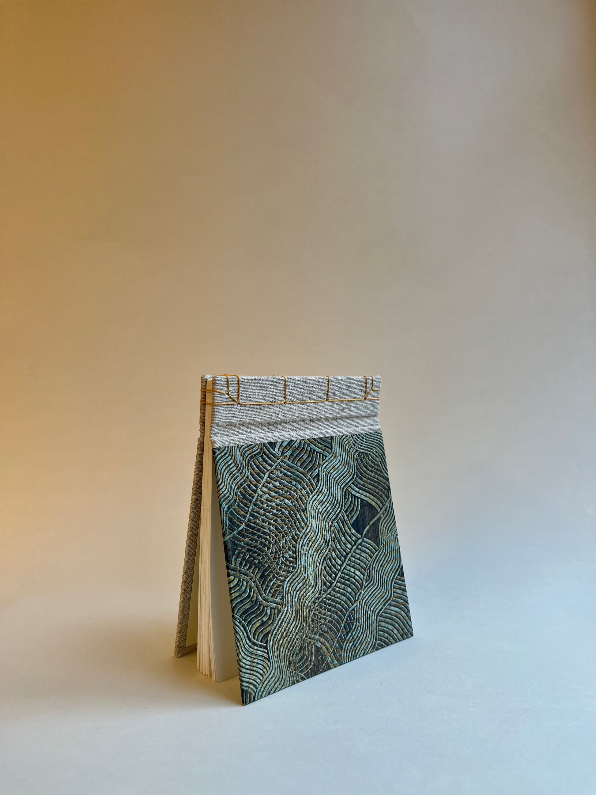 This block is made with our original paste paper on the front cover.