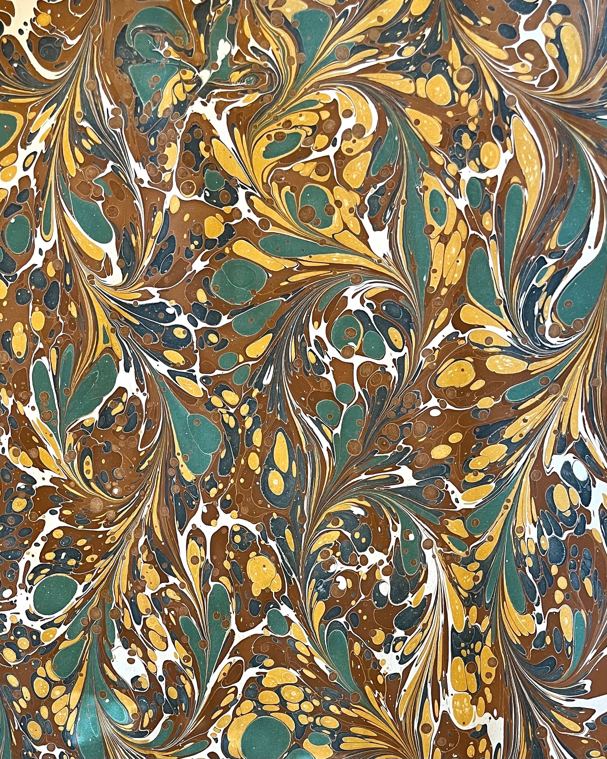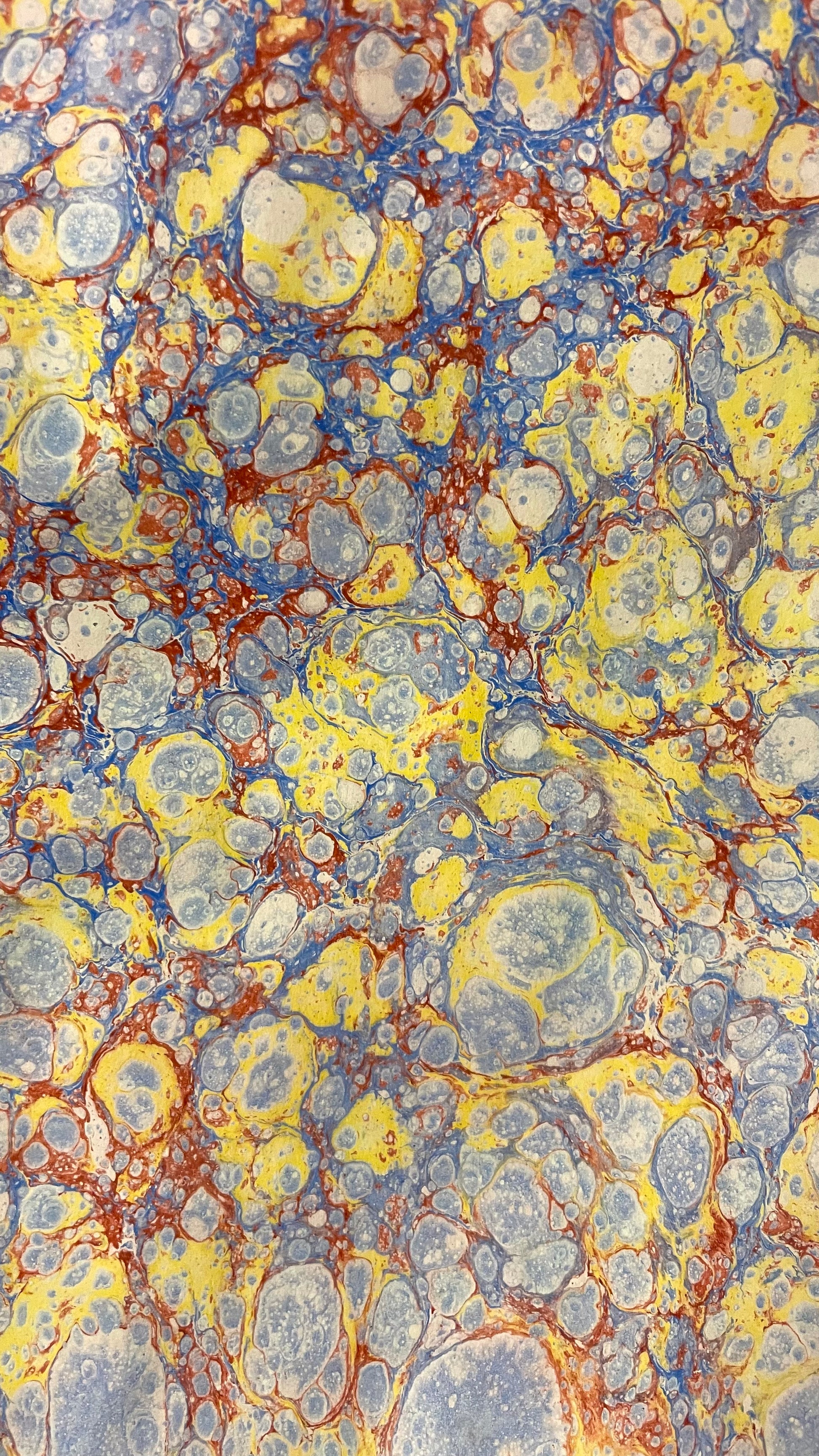 Under den här workshopen kommer vi att fokusera på att marmorera med gouachefärg. Metodiken skiljer sig något från marmorering med färger med akryl som bindemedel eftersom gouache inte flyter av sig själv på marmoreringsbadet. I gengäld så är det möjligt att helt och hållet styra färgens spridning. För den som vill jobba vidare i framtiden med "specialeffekter" som exempelvis French shell, marmorering med salter, stormont och fläkt så passar gouache väldigt bra till dessa ändamål. Den här kursen lämpar sig både för den som marmorerat förut, och för den som är nybörjare men har ett mer tekniskt eller historiskt intresse av marmorering.