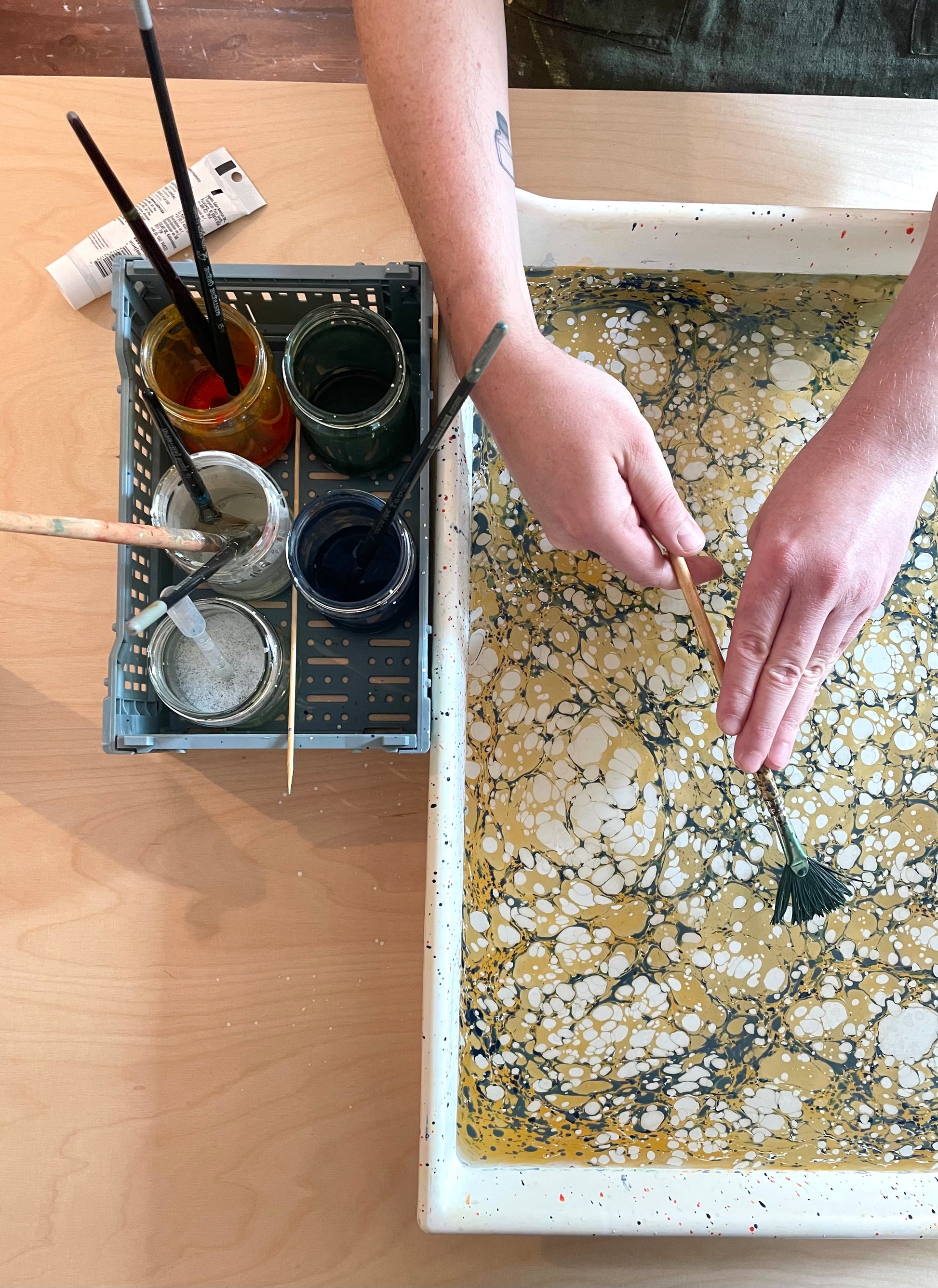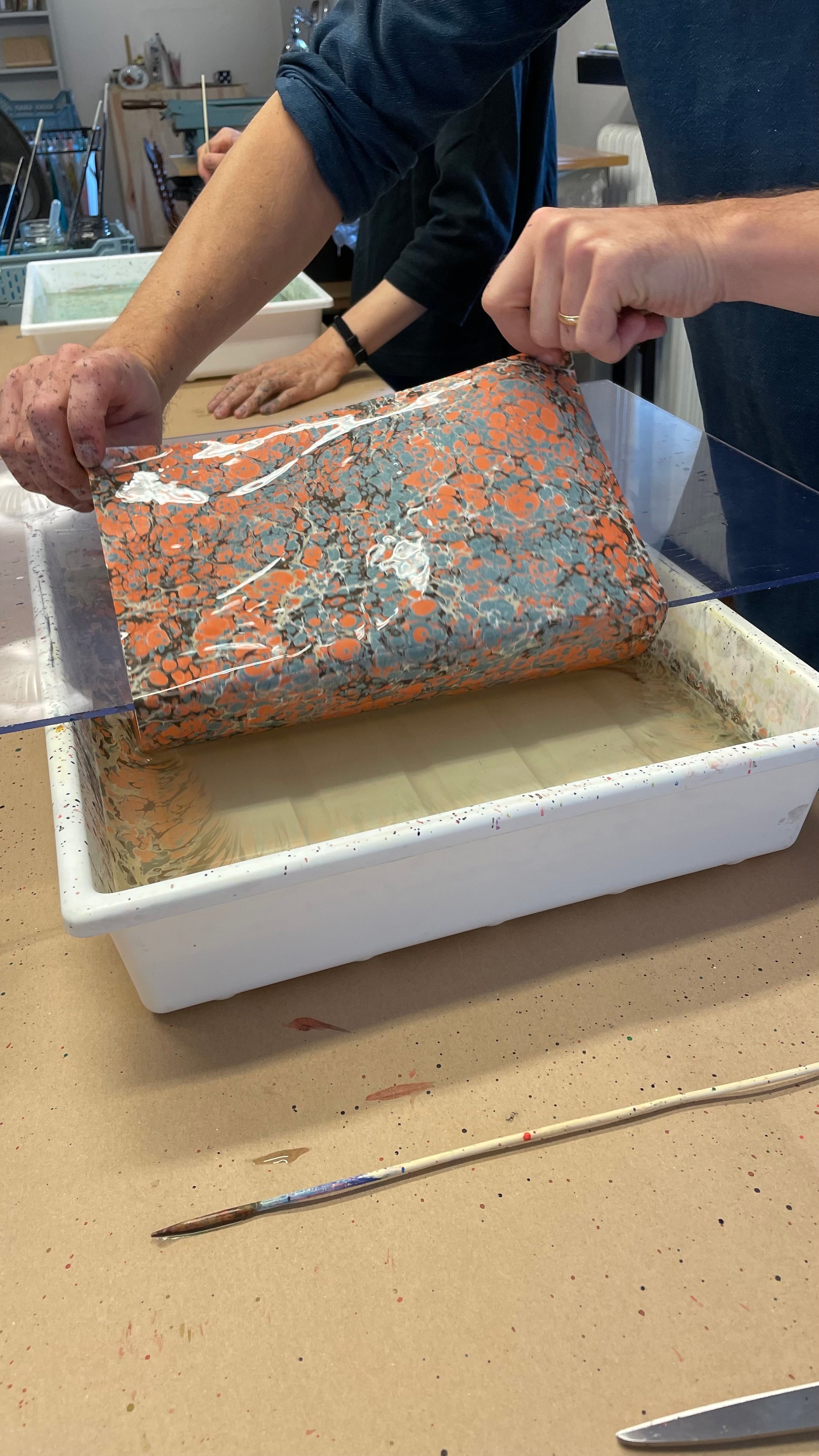 This workshop is held in Swedish but we are happy to host English speaking workshops in the future. Please send us an email at hej@svartbrun.com to let us know if there's a current demand for English speaking marbling workshops!