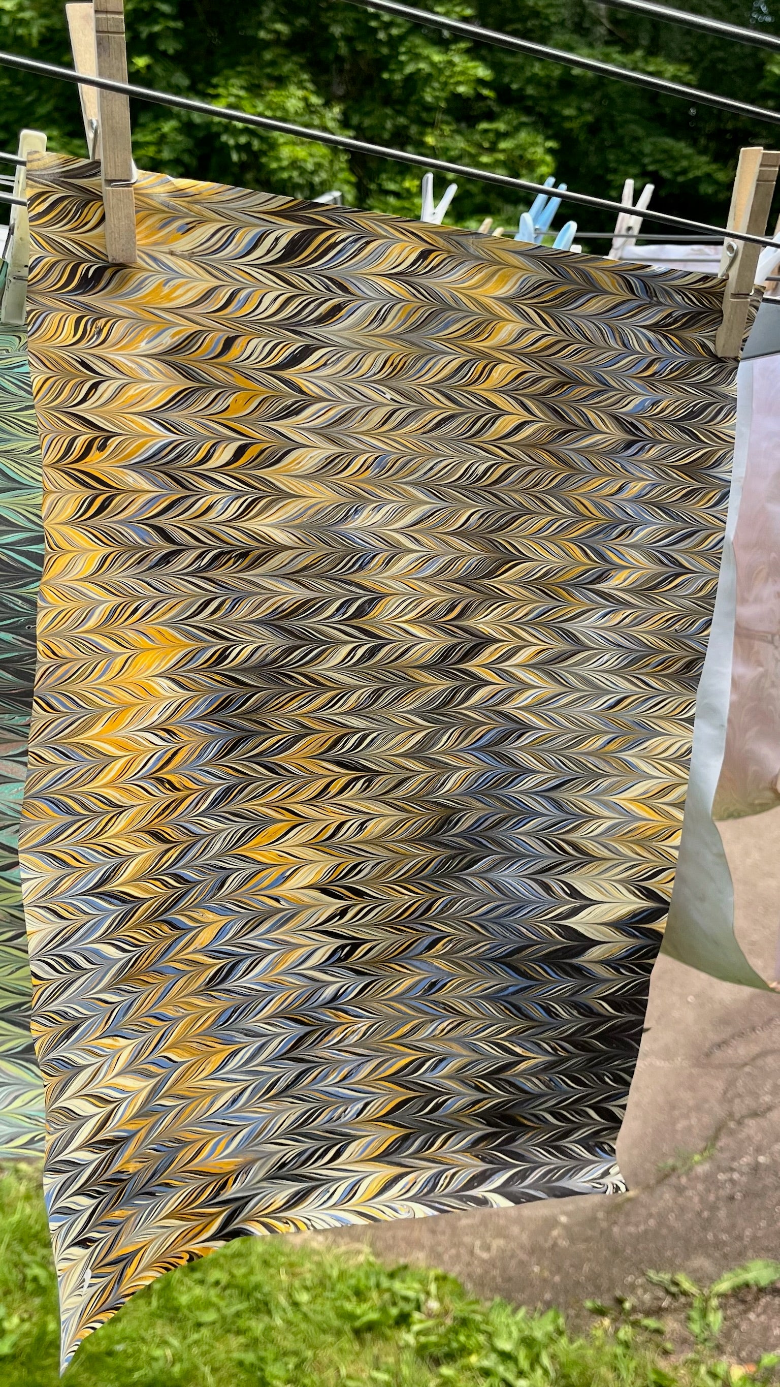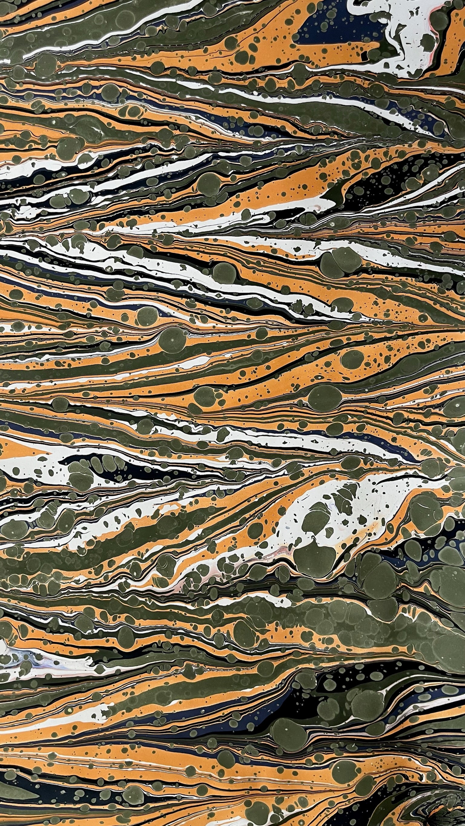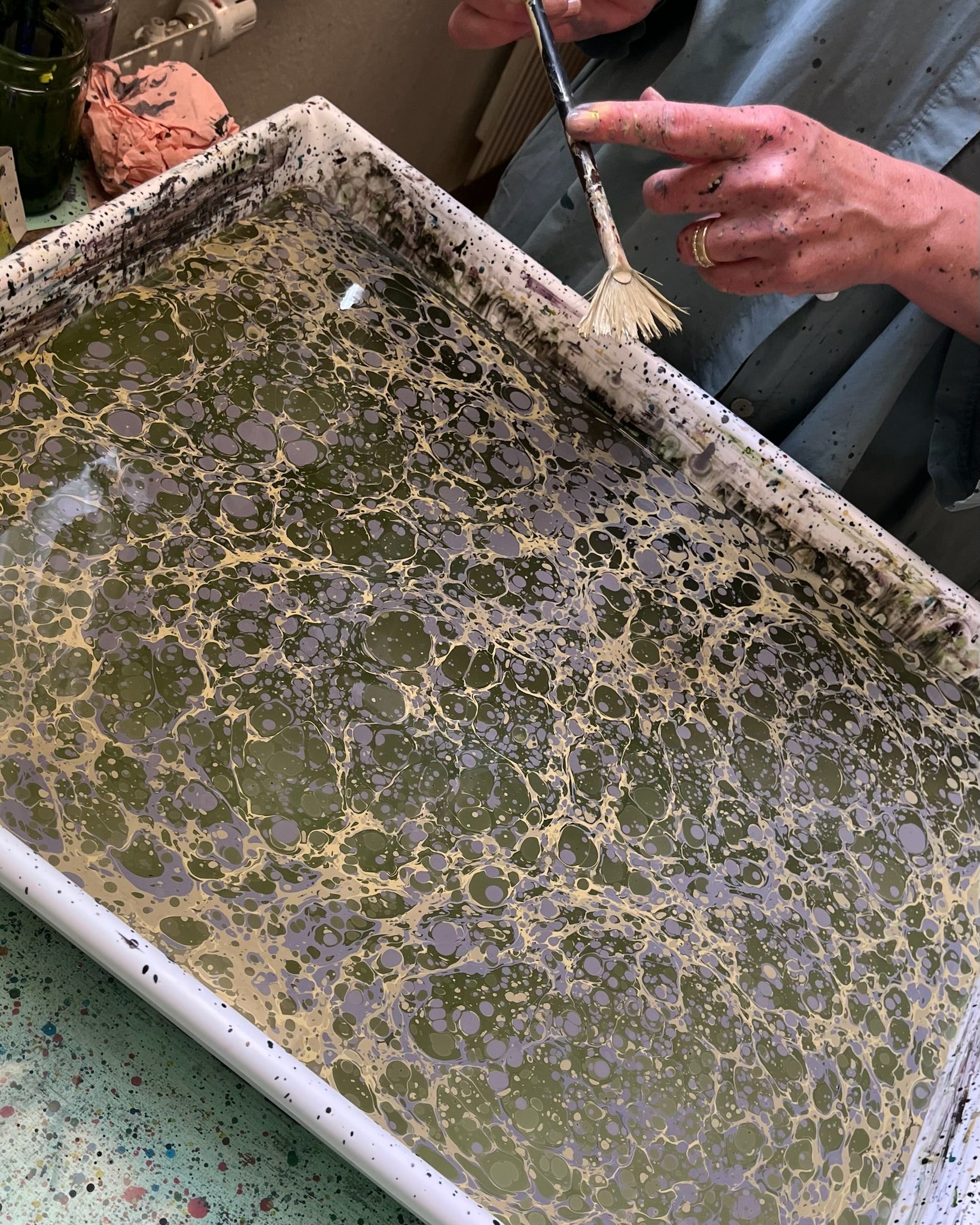 Lär dig marmorera papper enligt mönstertraditioner! Den här workshopen vänder sig till nybörjare, och vi går gemensamt igenom marmoreringens grunder och hur några av de vanligaste mönstren byggs upp.