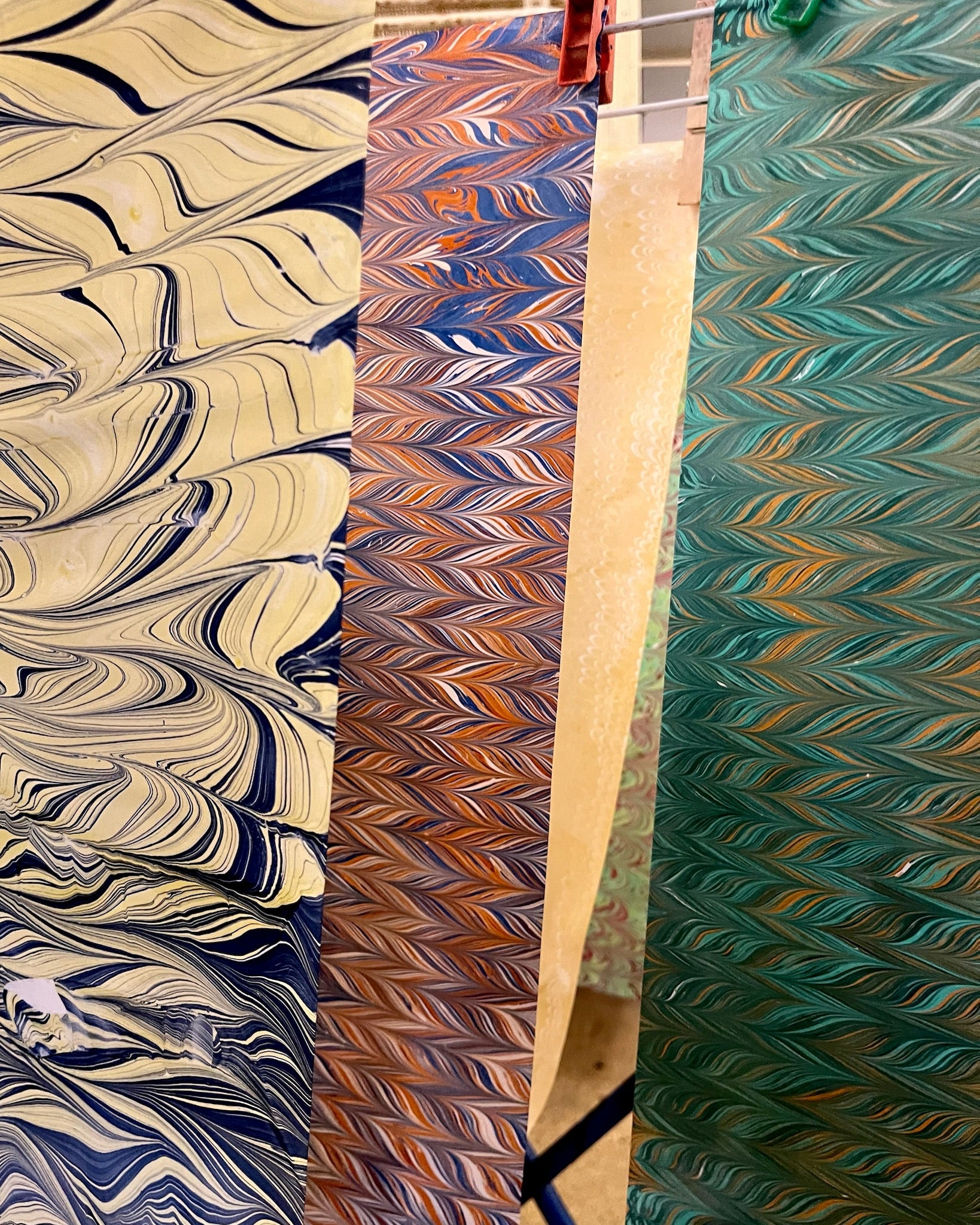 Du kommer att marmorera cirka tio papper som kan användas till allt från papperspyssel till bokbinderi eller som vackra print att sätta upp på väggen.