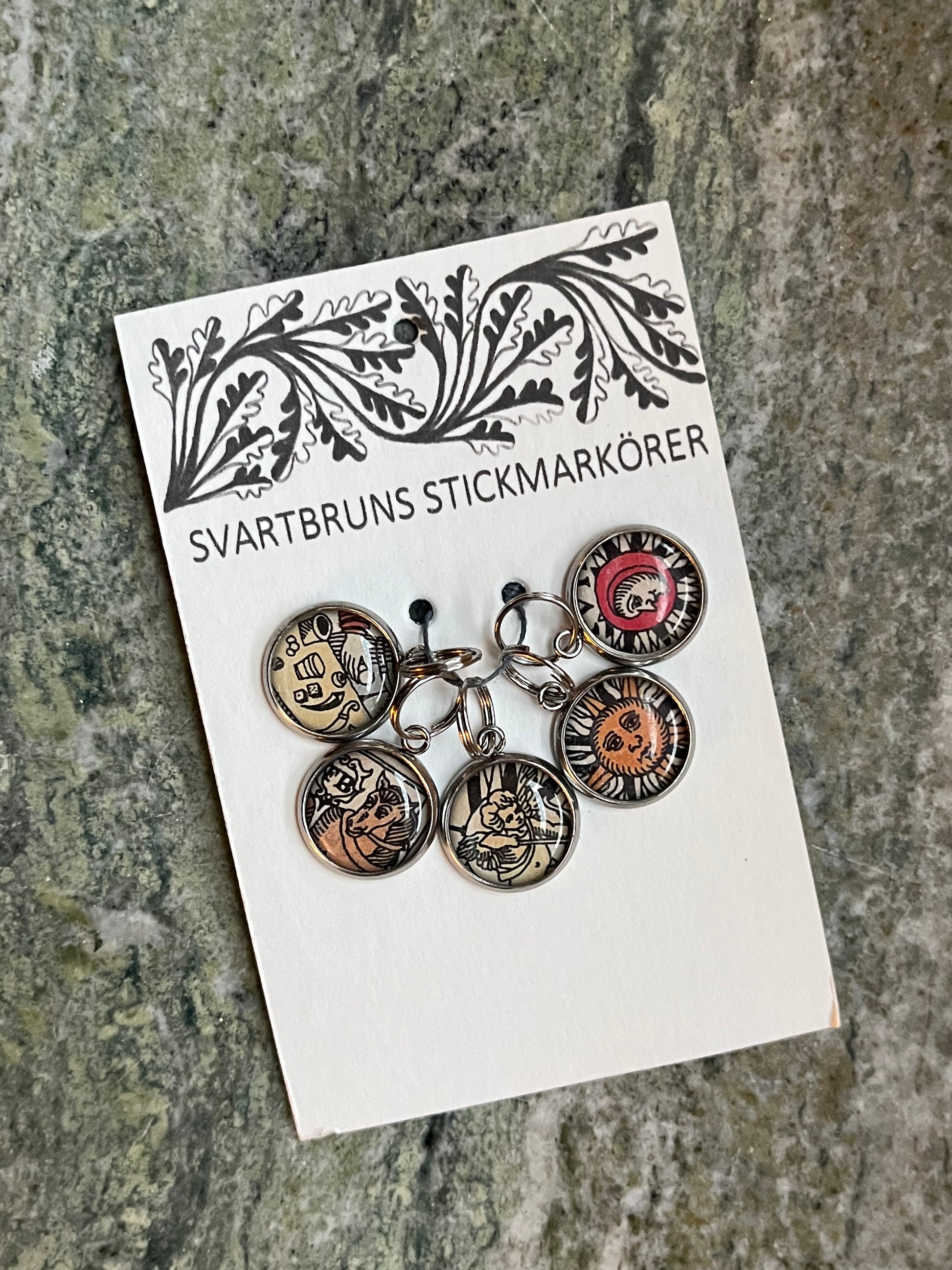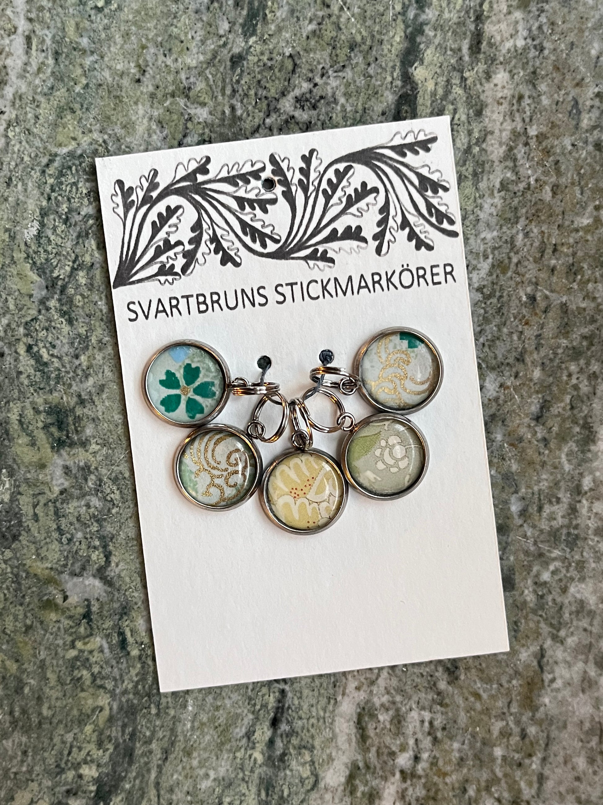 The markers have 9 mm rings attached to them. Please leave a request in a comment when ordering if you would like one or more to be replaced with bulb shaped safety pins. We’re happy to do so and won’t charge extra, it’s on us!