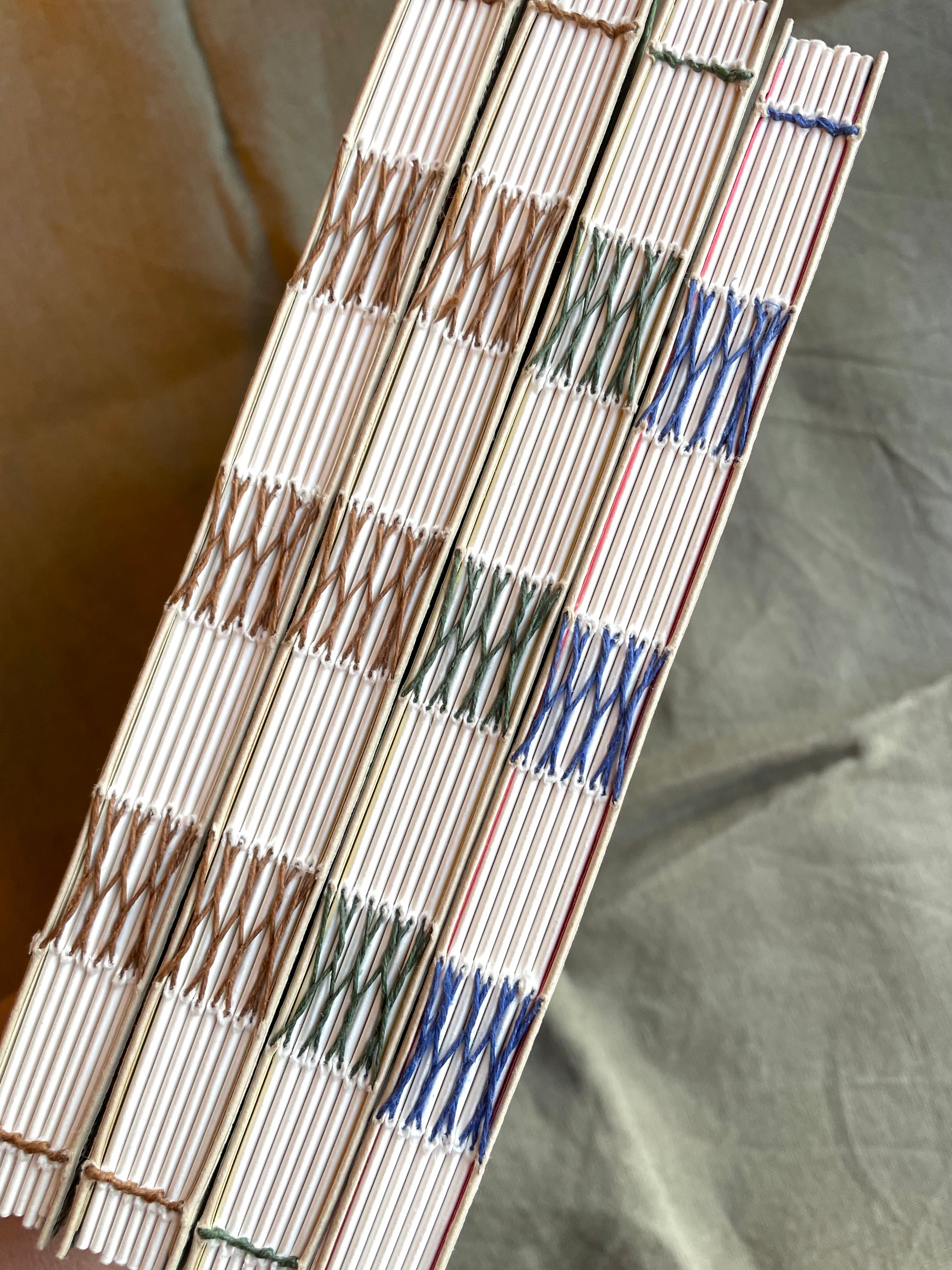 Binding french link stitch, stitched with bees waxed 100 % linen tread